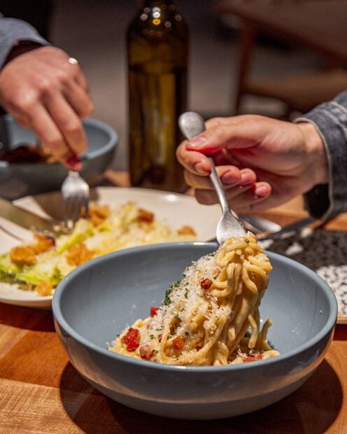“Cristina, Memo y yo estuvimos pensando en diciembre de 2020 en cómo aterrizar un concepto que fuera visual, en un espacio chiquito, con espíritu de barrio en donde la gente local se sintiera a gusto. Queríamos una cocina abierta, una barra, la opción de tener un café de calidad, desayunos ricos, pastas hechas en casa y comida que te invitara a pedir un trago, un estilo europeo que bien podría estar en las colonias Roma o Condesa”, describe Eduardo.