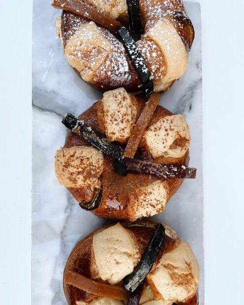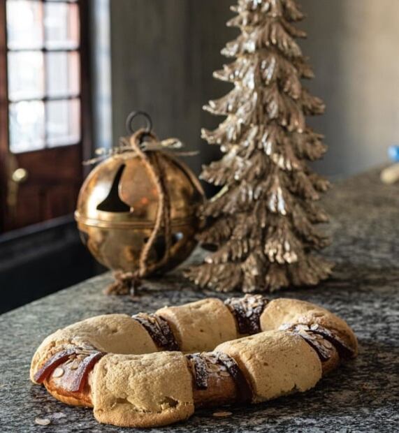 Disfruta de su rosca elaborada con masa brioche, ralladura de naranja, cobertura de rosita de cacao, ate de membrillo y almendra. Agenda tu pedido antes de que se acaben, cuentan con tres tamaños que van desde los 60 hasta los 550 pesos. Además, puedes cambiar los muñequitos de plástico por un nacimiento de porcelana hecho a mano.