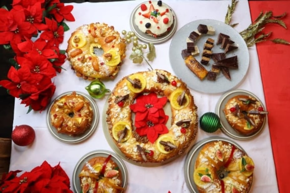 Podrás elegir entre la rosca rellena de mazapán coronada con naranjas semi confitadas y almendras; la versión rellena de mazapán con cubierta de naranjas, cerezas amarenas, chabacanos, almendras y placas crujientes de azúcar; la rosca con cubierta crujiente, rellena de crema catalana quemada o para los más indulgentes, la rosca cubierta de chocolate y nueces, rellena de gelée de naranjas semi confitadas y trufa montada.