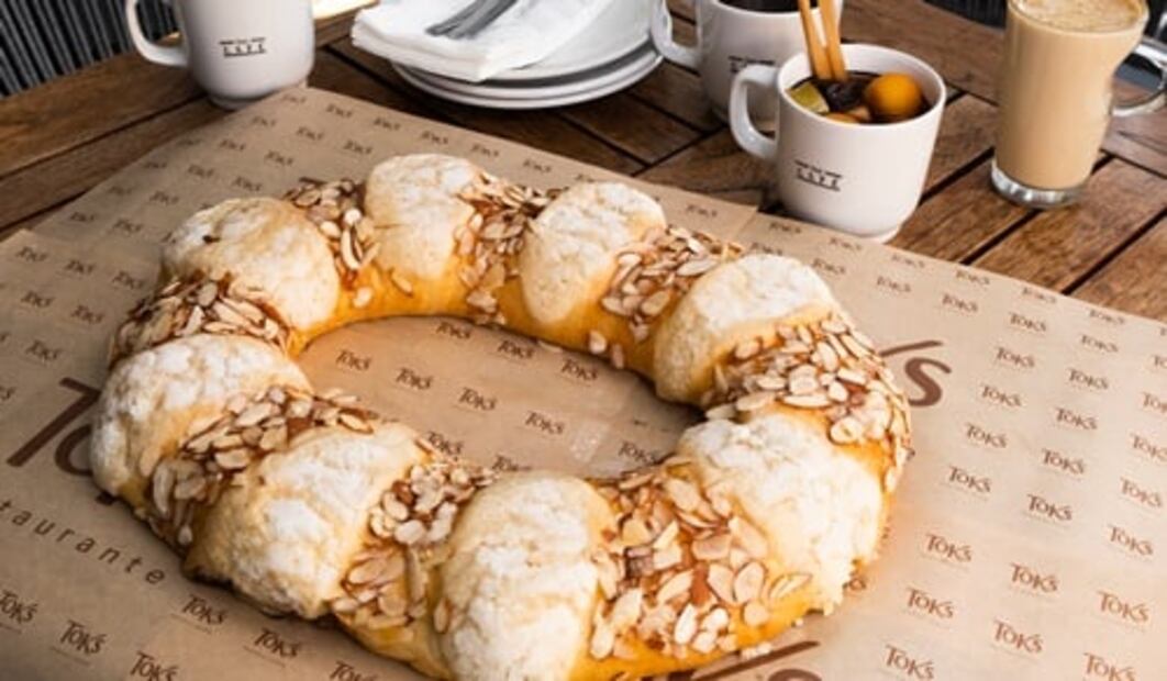 Toks con esta rosca nos demuestra que es más que un restaurante. En su rosca hay ingredientes de calidad y mucho sabor. Las opciones son la clásica azucarada y la rellena de mermelada de chabacano cubierta de costra de azúcar y almendras fileteadas. La miga tiene un ligero sabor a naranja. Los tamaños disponibles para la clásica son son individual, mediana y grande mientras que para la de relleno de chabanaco hay en formato individual y mediano. Lo ideal es acompañar esta rosca de reyes con chocolate caliente artesanal de Sierra Morena.