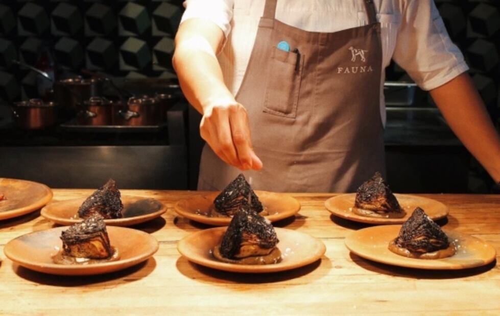 A un costado de Bruma está Fauna , un restaurante mexicano que experimenta con todos los ingredientes que tienen a la mano. La cocina está liderada por David Castro Hussong y Maribel Aldaco Silva .