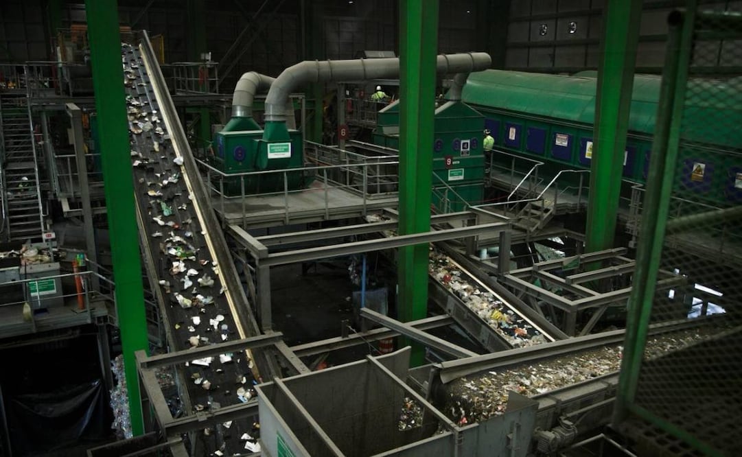 Posteriormente descargan los otros residuos que son enviados a una fosa y desde ahí una excavadora alimenta las transportadoras de la planta, en donde hay personas separando la basura más voluminosa, telas y PET.