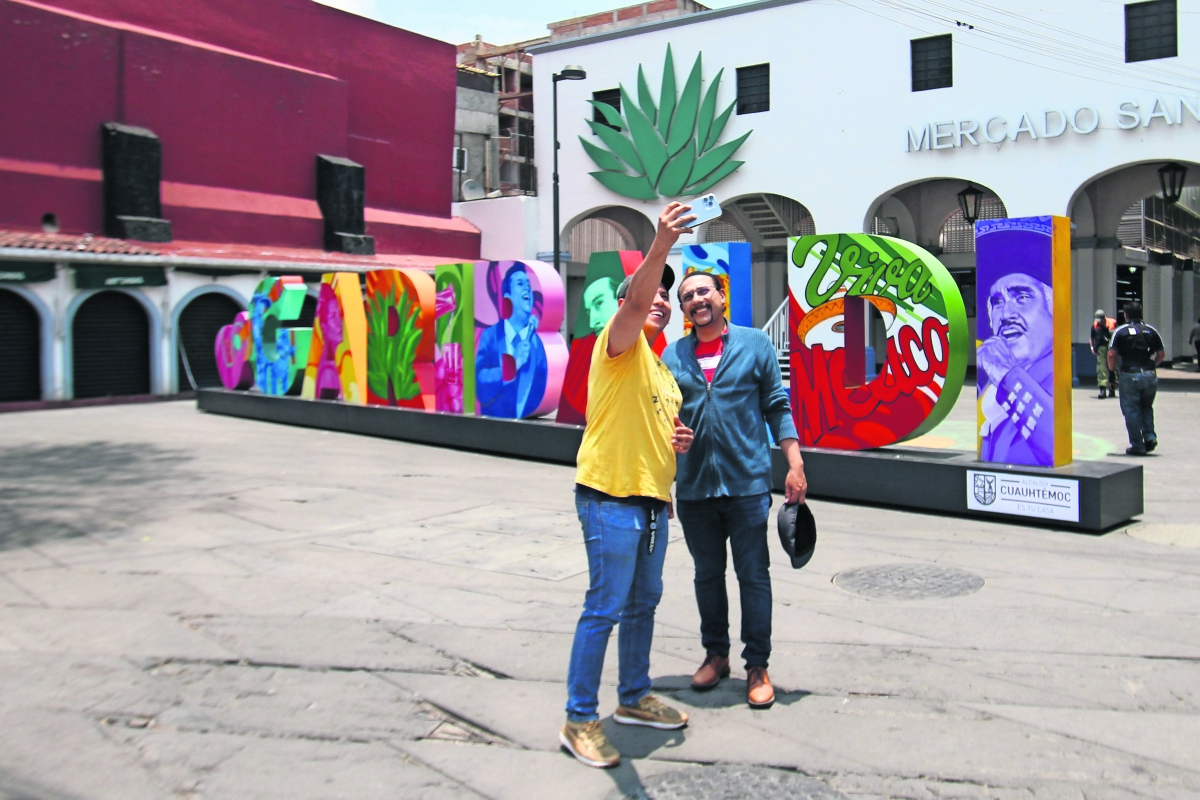 A dos días de su colocación, frente al conocido mercado de San Camilito, en el barrio de la Lagunilla, capitalinos de todas las edades y familias de extranjeros que pasaban por este punto de la Ciudad se tomaron selfies y fotografías grupales.