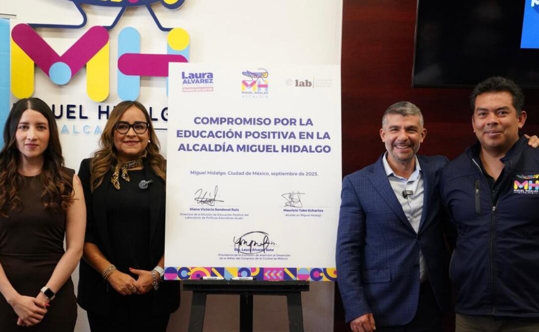 Mauricio Tabe, alcalde de Miguel Hidalgo, el Laboratorio de Políticas Educativas (eLab) y la diputada Laura Álvarez Soto, presidenta de la Comisión de Derechos de Niñas, Niños y Adolescentes del Congreso de la Ciudad de México, firmaron un Convenio para implementar el programa Escuelas Positivas, cuyo objetivo es promover una educación que coloque la salud emocional y el bienestar integral en el centro del aprendizaje.