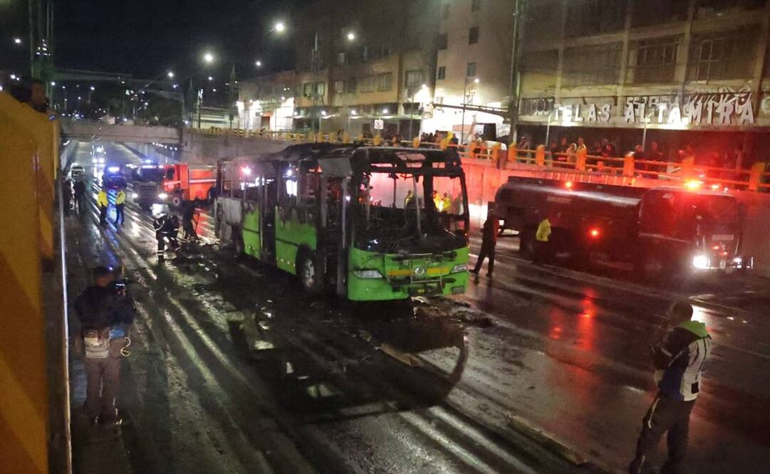 Incendio de unidad de RTP en Eje Central noche del domingo 24 de noviembre/ Foto: Francisco Rodríguez. EL UNIVERSAL