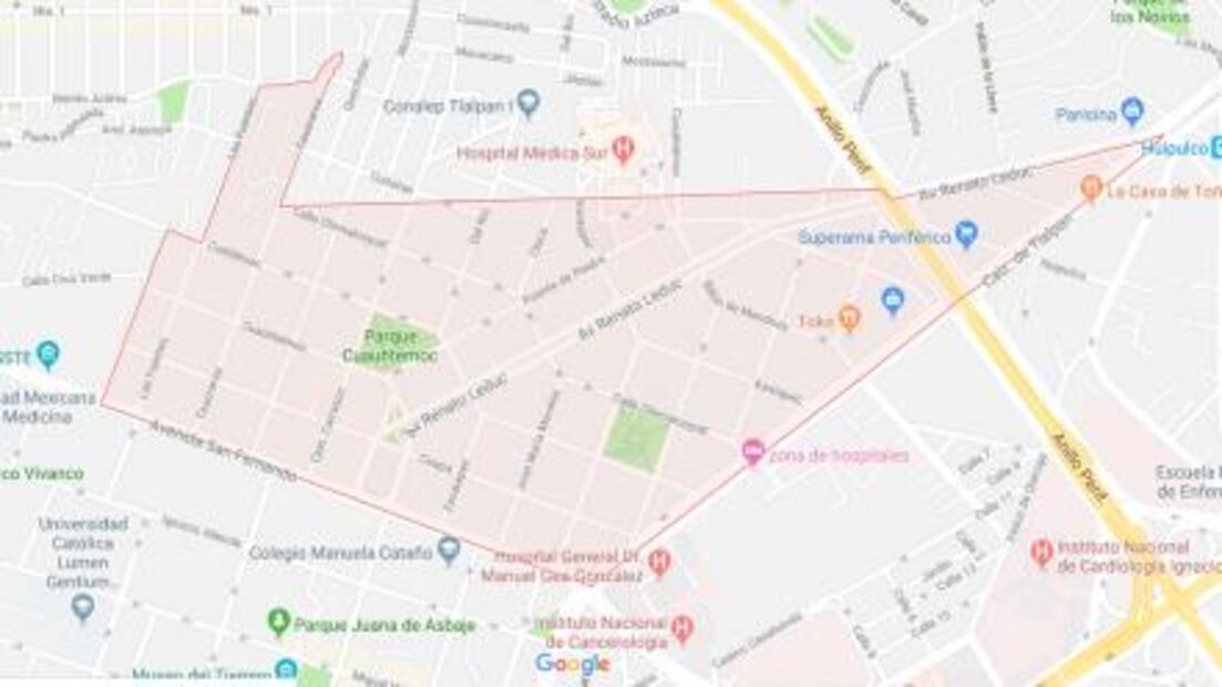 Mapa actual de la colonia Toriello Guerra. Google Maps.