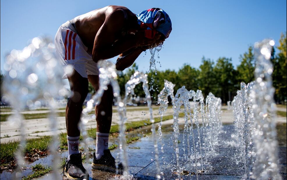 Una persona acude a una fuente pública para refrescarse durante un día caluroso en Berlín, Alemania, el miércoles 2 de julio de 2025. El Servicio Meteorológico Alemán advierte de una ola de calor con temperaturas que alcanzarán los 38 grados Celsius en gran parte del país. Foto: EFE