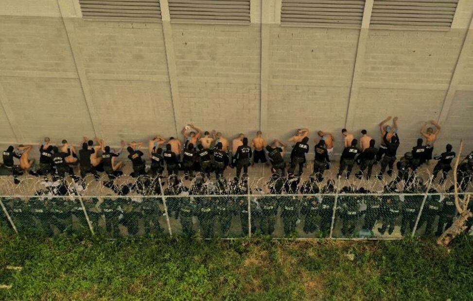 Los prisioneros fueron sentados en el piso bajo una rigurosa vigilancia de policías militares, en una operación algo similar a las ejecutadas en los centros penales de El Salvador, por instrucciones del presidente de ese país, Nayib Bukele.