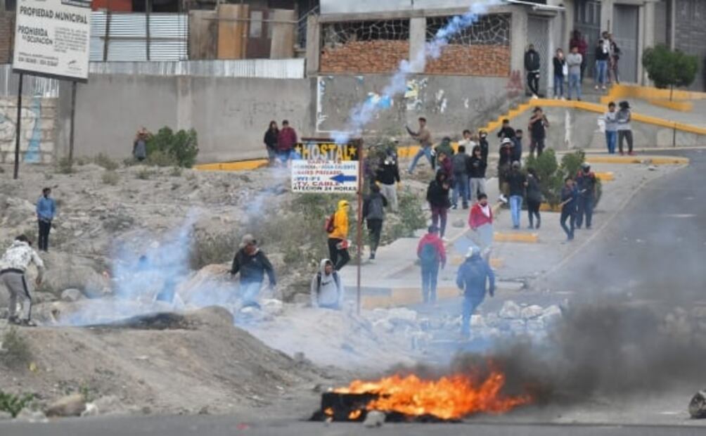 En Arequipa, segunda ciudad de Perú, decenas de pobladores intentaron por segundo día consecutivo de invadir la pista de aterrizaje del aeropuerto, cerrado y resguardado por fuerzas del orden desde el jueves.