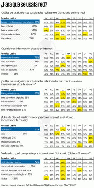 Aunque esta encuesta se realizó en el marco de un año extraordinario por la pandemia de coronavirus, Jiménez cree que el consumo en internet llegó para quedarse. “Habrá una nueva normalidad”, dice. Algunas cosas podrán volver a ser como antes; en algún momento la gente podrá regresar a trabajar, ir a centros comerciales y socializar.