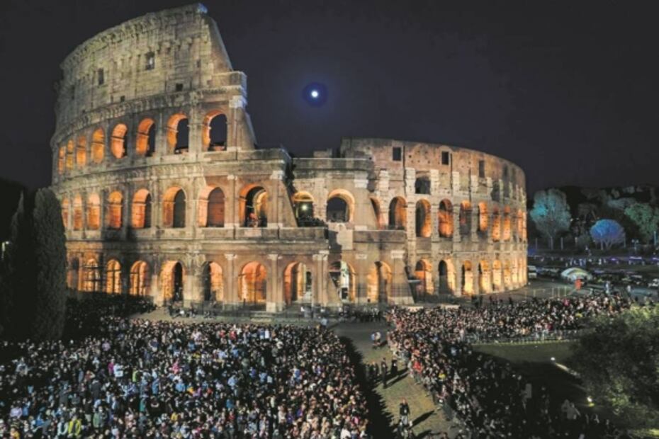 En el Coliseo de Roma, el Viacrucis estuvo marcado por la invasión de Rusia a Ucrania. Foto: Gregorio Borgia/AP