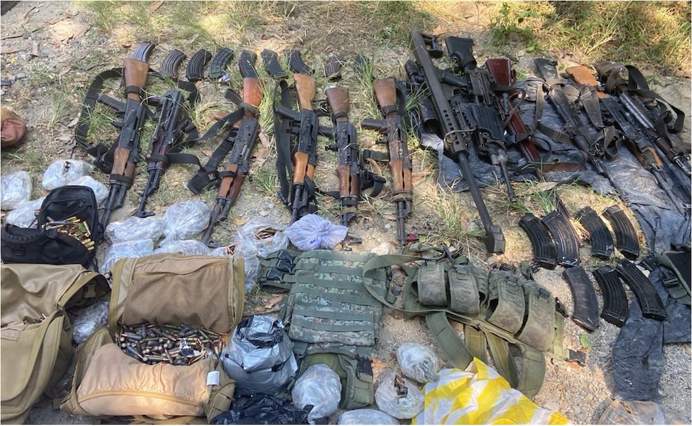 - Múltiples cargadores y cartuchos de diferentes calibres, artefactos explosivos improvisados