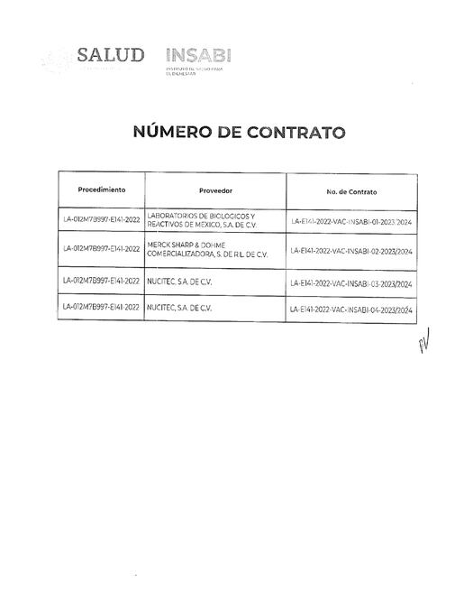 El contrato es por un monto de 2 mil 164 millones 535 mil 111 pesos, para surtir vacunas de neumococo y pentavalente, y tiene vigencia al 31 de diciembre de 2024.