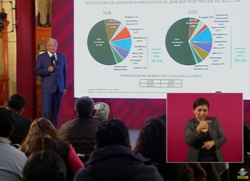 Exhibe el presidente López Obrador la evolución de la energía producida por tipo de tecnología: “¿Qué alegan? Es corrupción, son muy corruptos y no quieren dejar de robar”.