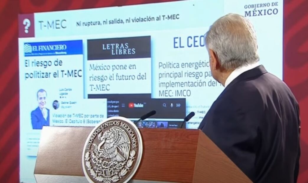 09:10- López Obrador exhibe a quienes opinan de un riesgo por el T-MEC.