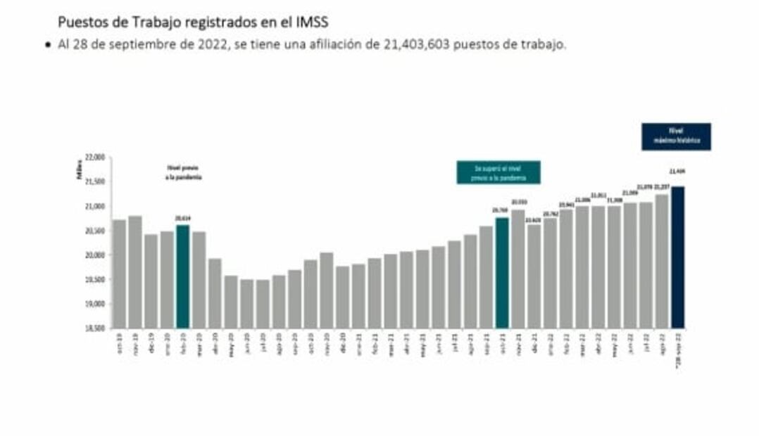 08:37- Confieso que estoy contento porque está creciendo el número de empleos. La economía está creciendo, nada más lo que está pendiente es lo de la inflación y tenemos confianza que vamos a detenerla, expresa. Muestra el avance en la creación de empleos.