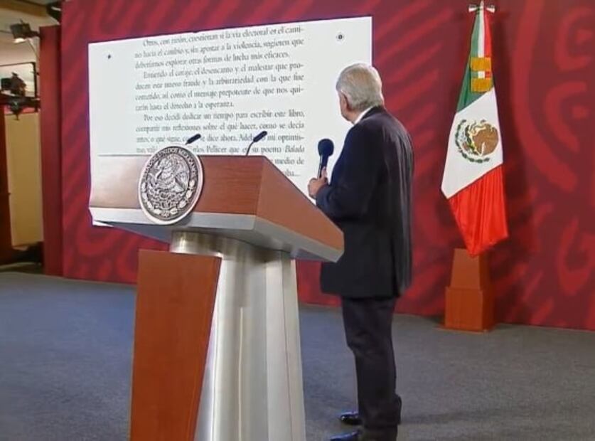 08:07- “Para los jóvenes”, lee una reflexión que hizo en uno de sus libros sobre flancos de izquierda, como los zapatistas, que le tenían desconfianza. Señala otra vez que le hicieron fraude electoral.