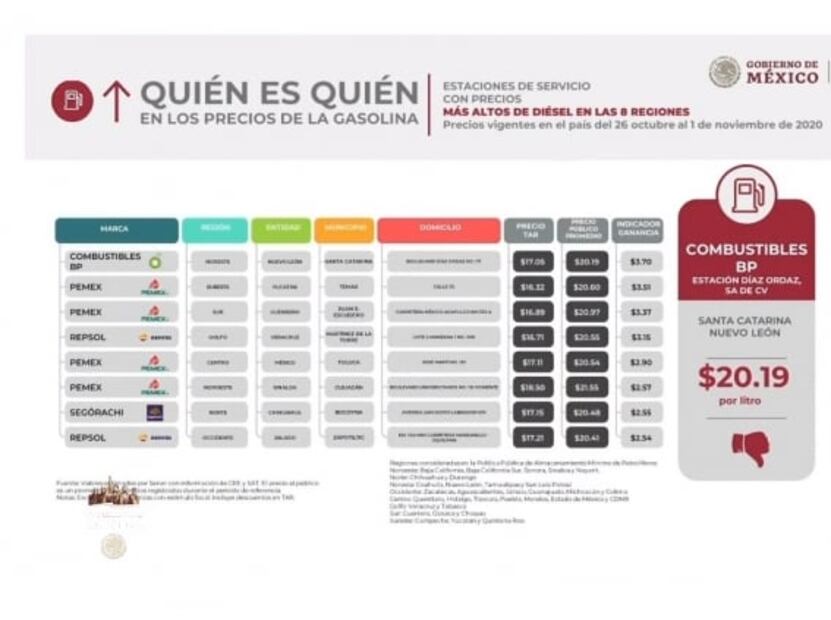 , titular de la Procuraduría Federal del Consumidor (Profeco), informa “quién es quién” en los precios de los combustibles.