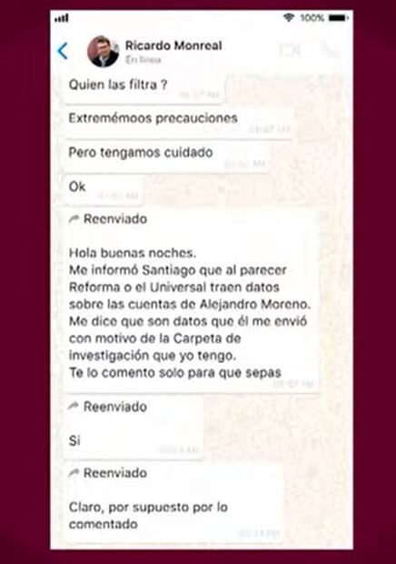 En la conversación se observa que Moreal avisó a Alito sobre la posible filtración de información por parte de los medios de comunicación donde se hablaba de las cuentas de éste.