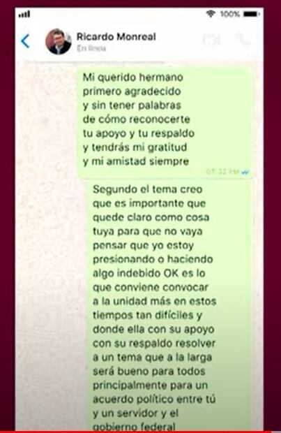 En las charlas, Alito expresa su apoyo a Monreal e incluso en una ocasión le dice "tendrás mi gratitud y amistad por siempre".