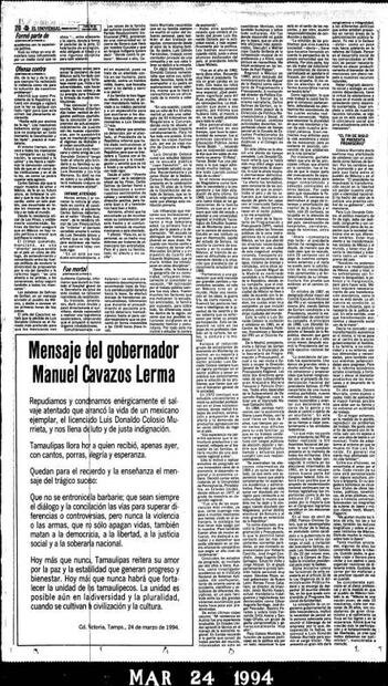 Un día después del atentado esta casa editorial publicó que el entonces Presidente, Carlos Salinas de Gortari , afirmaba que el asesinato era una ofensa contra todos los mexicanos y una afrenta a las instituciones.