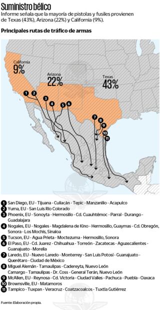 Lee también: Sedena identifica 11 rutas de tráfico de armas de EU a México; Texas, principal punto de ingreso ilegal