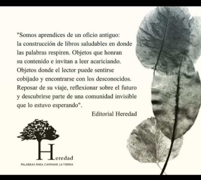 Heredad es el nombre de un proyecto entre amigos que editan libros de arte, historia, y trabajo comunitario. Sus primeros cuatro libros se publicaron en el mes de septiembre de 2020 como parte de una serie de colecciones: Andares, voces y miradas, testigos y efímera.