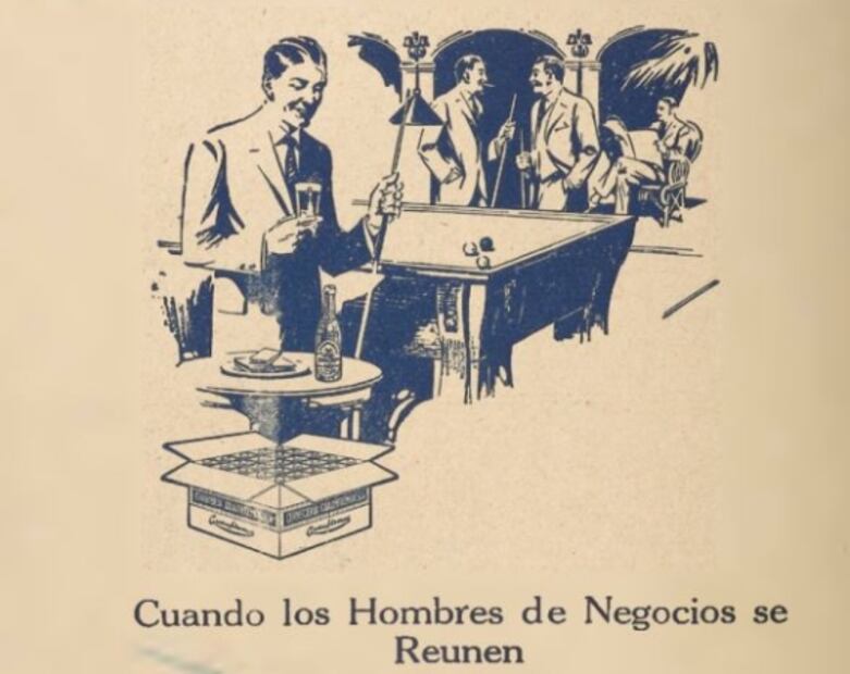 Otro de los anuncios describía que cuando los hombres de negocios se reunían, usualmente tomaban Carta Blanca. “Hombres de criterio indiscutible y refinado gusto que saben distinguir lo mejor y lo exigen siempre, toman invariablemente Carta Blanca”, iniciaba la descripción de la nueva presentación de la cerveza “ahora en cartones corrugados con 25 botellas cada uno”.