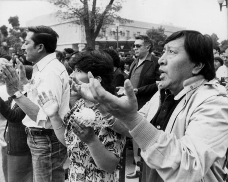 Personas rezando durante 1985. Foto: Archivo/EL UNIVERSAL.