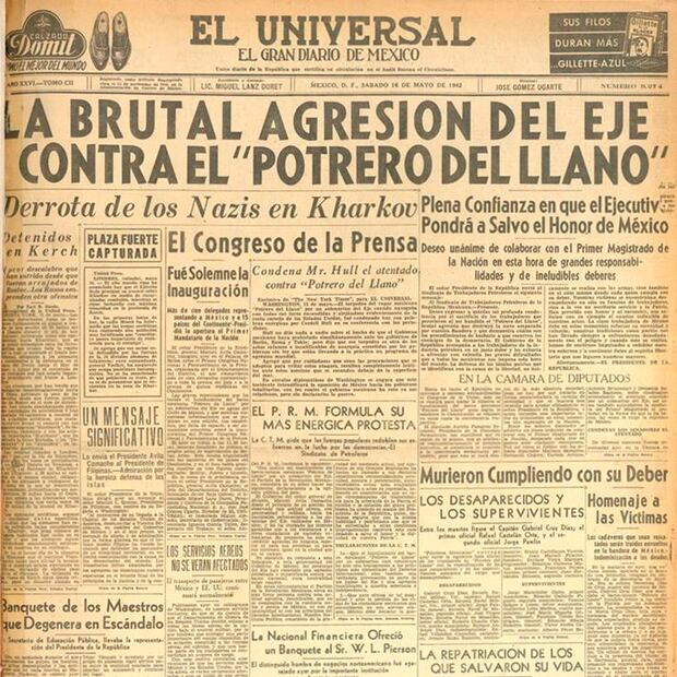 El 28 de mayo de 1942, en sesión solemne ante el Poder Legislativo, se solicitó la declaración del Estado de Guerra entre la República Mexicana y las potencias del Eje en un discurso donde se informó del hundimiento de los mercantes mexicanos.
