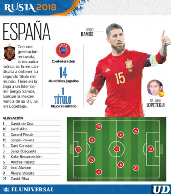 El delantero del Chelsea Álvaro Morata parece el destinado a ocupar esa posición tras haber sido el atacante más utilizado por Lopetegui en diez partidos por delante del delantero del Celta, Iago Aspas, el segundo artillero con más minutos en la Roja de Lopetegui.