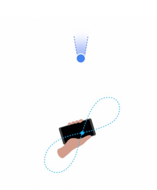 - Con tu celular en mano, haz la figura de un 8 hasta que logres calibrar la brújula. Solo necesitas hacer este paso un par de veces hasta que el haz de luz sea más estrecho o marque la dirección correcta.