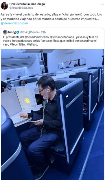 "Así se la vive el parásito del estado, alias el "chango león", con todo lujo y comodidad viajando por el mundo a costa de nuestros impuestos.... @fernandeznorona".