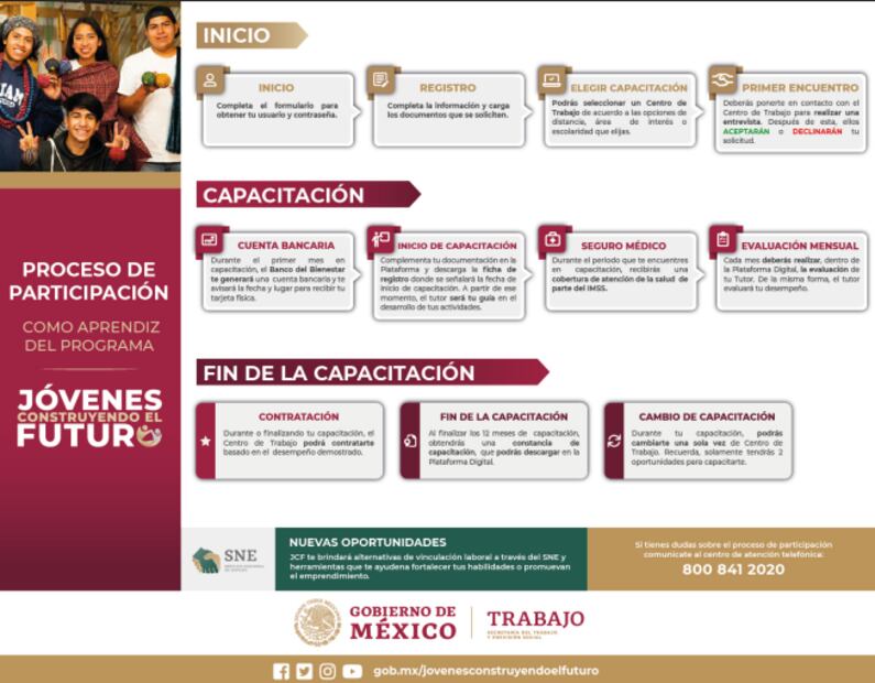 Si deseas entrar al programa, deberás realizar previamente tu registro en el sitio web oficial del programa: Jóvenes Construyendo el Futuro. Y posteriormente postularte en uno de los centros de trabajo o empresas disponibles a través de la misma plataforma.