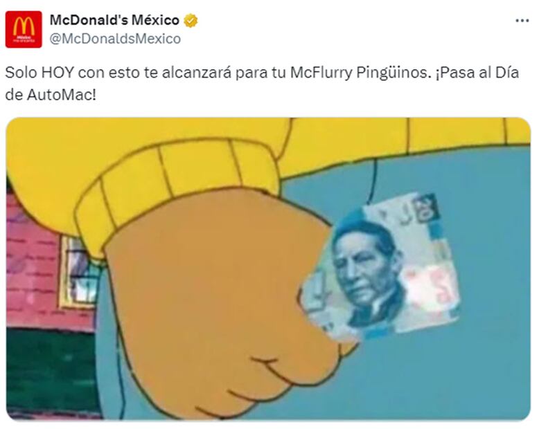 Por medio de la plataforma X, la compañía de comida rápida dio a conocer que la promoción se trata de un helado McFlurry Pingüinos a sólo 20 pesos.
