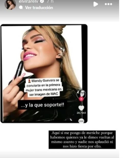 La influencer trans, Elvira Ramírez fue una de las que se sumó al debate, pues por medio de sus redes sociales expresó su desacuerdo con el reconocimiento otorgado a Guevara.